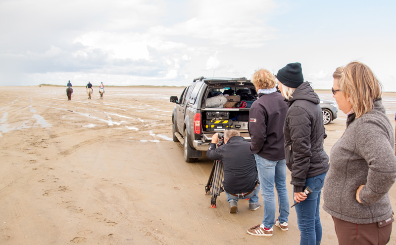 In Zusammenarbeit mit dem dänischen Tourismusportal VisitDenmark zeigt Brian in vielen Videos schöne Ecken Dänemarks auf seine ganz eigene „verrückte“ Art und verbindet das meist mit kulinarischen Ausflügen. Nun war er erneut auf Rømø, diesmal um zu Reiten. Brian, seine Frau Bettina und seine Tochter Sienna bekamen je ein liebes Pferd vom Reiterhof Thomsen und machten den Sønderstrand unsicher :-) Nun ist das Video endlich online! Ab Minute 2:07 wird es spannend :-) Kaum zu glauben, aber für nur eine Minute Film wird ein ganz schöner Aufwand betrieben! Das Filmteam bestand aus einem Kamera- und einem Tonmann sowie einer Redakteurin. Und weil am ersten Drehtermin die Bedingungen nicht ganz optimal waren, wurde am nächsten Tag gleich nochmal gedreht. Viele Stunden vor Ort, dazu die Vorbereitungen, hinterher der Schnitt, Vertonung, Vor- und Abspann usw. Zum Einsatz kam bei dem Dreh auch eine Kameradrohne für die Luftaufnahmen. Manche Szenen wurden mehrfach gedreht, bis die optimale Einstellung im Kasten war. Beim Drehen mit Tieren muss man zudem viel Geduld mitbringen und immer den geeigneten Moment abpassen. Schaut Euch das Video mal an – so schön kann Reiten auf Rømø sein! Großen Dank an Shadow, Lally, Robin und Jenny!